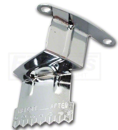 Early Chevy Timing Chain Cover Tab, Small Block, Chrome, With Sliding Pointer, For Cars With 7 Harmonic Balancer (1949-1952 Fleetline; 1949-1952 Styleline Deluxe)