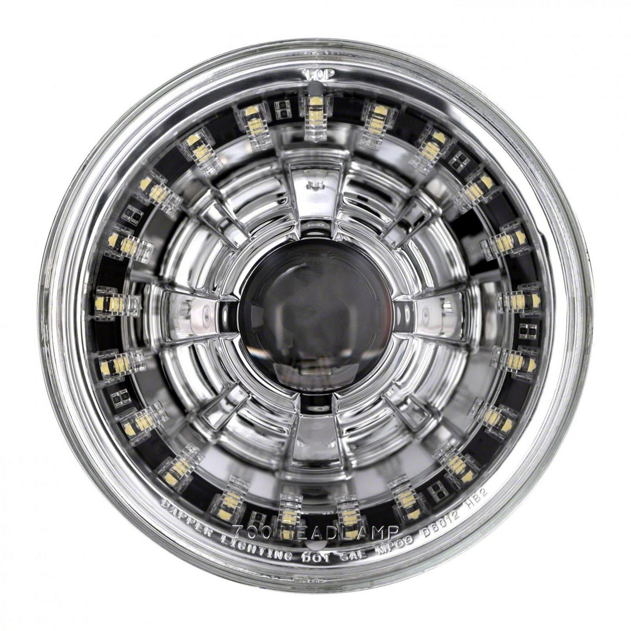 7-Inch LED Headlight with Modern White Halo; Chrome Housing; Clear Lens (Universal; Some Adaptation May Be Required)