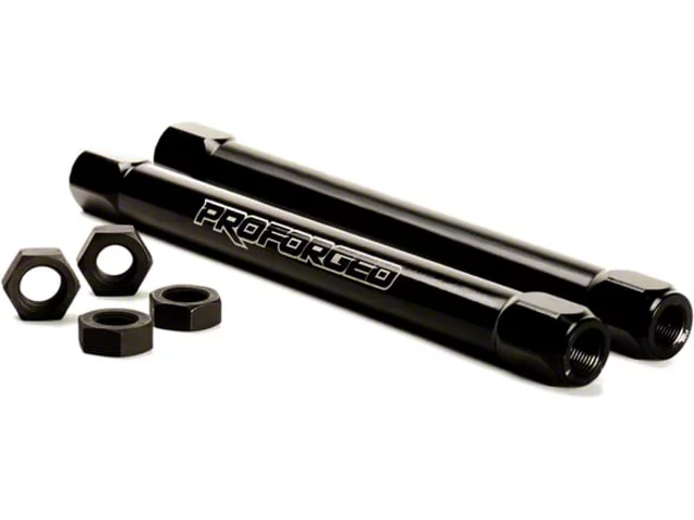Installation. This product installs by removing the factory sleeve, threading in the ProForged billet unit to match the original length, locking with included nuts, and verifying alignment—basic hand tools and alignment equipment recommended.