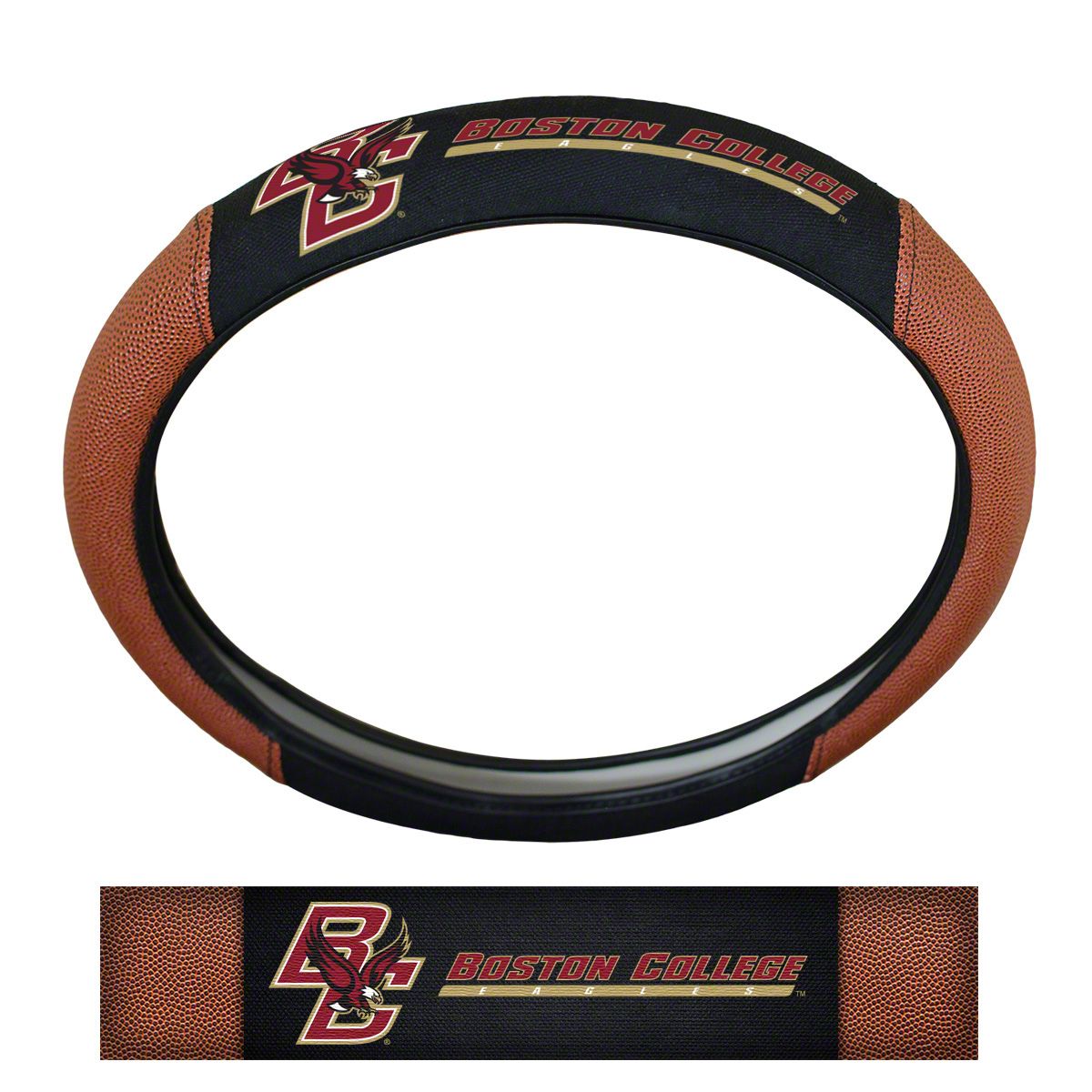 Grip Steering Wheel Cover with Boston College Eagle Logo; Tan and Black (Universal; Some Adaptation May Be Required)