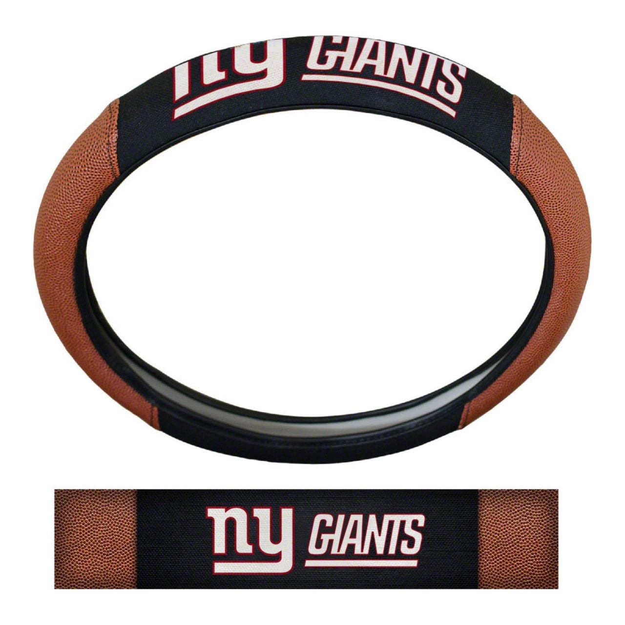 Grip Steering Wheel Cover with New York Giants Logo; Tan and Black (Universal; Some Adaptation May Be Required)