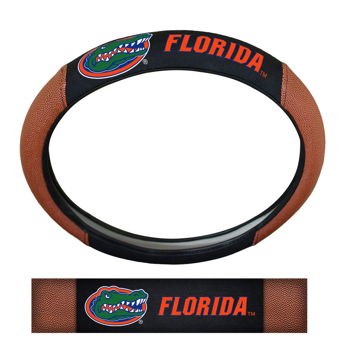 Grip Steering Wheel Cover with University of Florida Logo; Tan and Black (Universal; Some Adaptation May Be Required)