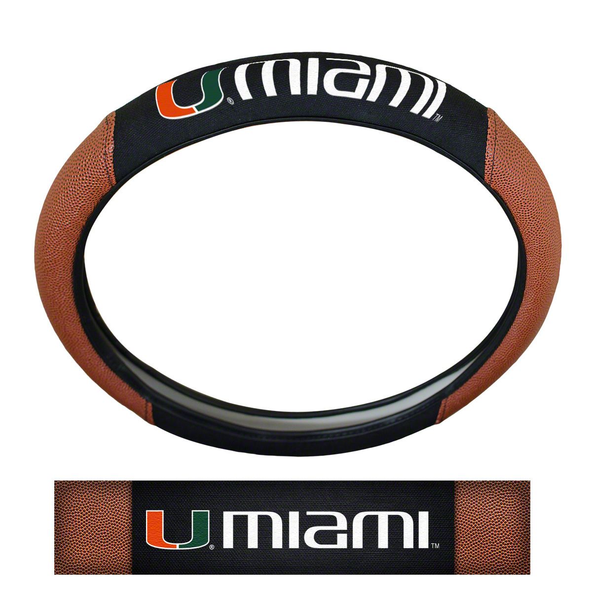 Grip Steering Wheel Cover with University of Miami Logo; Tan and Black (Universal; Some Adaptation May Be Required)