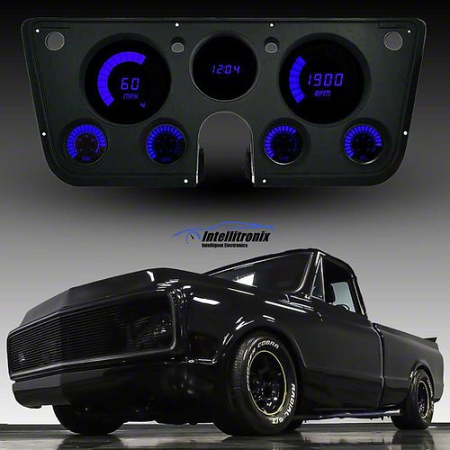 Your vintage 1967-72 Chevy Truck will be the talk of the town with a new 67-72 Chevy Truck LED Digital Bargragh Direct Fit Dash Panel Replacement by Intellitronix. Fully loaded with direct fit printed circuit boards, custom fit "smoked" Plexiglas faceplate, universal temperature, oil pressure, and speedometer sending units for vehicles without electronic transmission or cruise control, and instructions for installation.