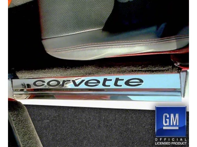 Stainless Steel Door Protection. These Stainless Door Sill Plates with Corvette Inlay (Garnet Red) are designed to protect your Corvette’s door sills from scruffs and scratches, while concealing any existing imperfections. The modern design with Corvette lettering offers a stylish upgrade to your vehicle’s interior, making it look sleek and refined.