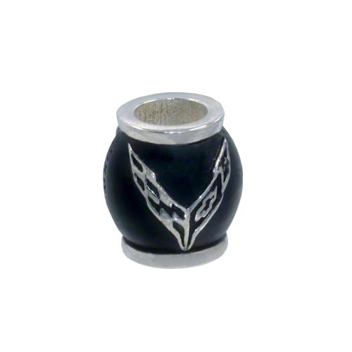 This Next Generation C8 Corvette Pandora style barrel bead comes with wrap-around emblems and is made of sterling silver and black enamel. The charm hole is large enough to go over the screw-type bracelets and fits Pandora, Chamilia, Biagi, Pugster, Troll and other bracelets.