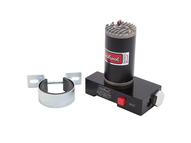 These state-of-the-art electric fuel pumps offer maximum performance in a compact package. With anodized aluminum housings and high-quality internals, they are both strong and durable. Each pump is factory-tested and includes mounting brackets. The carbon vanes and composite rotor give these pumps the added boost for maximum performance. The high quality construction results in a pump that is 4 to 14 db quieter than competitors' pumps at the same pressure. #1791 is factory preset to 6.5 psi and no regulator is required. With a replaceable screen type inlet filter and the free flow rate of 120 gph it is sufficient to supply 480 HP. #1792 has a free flow rate of 160 gph, enough to feed a 1000 HP engine. This pump is factory preset to 12 psi and requires an external regulator