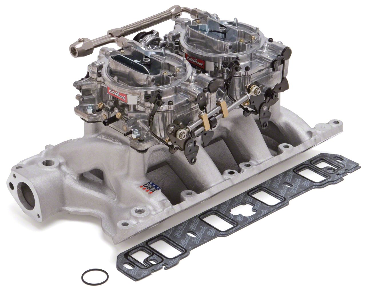 A huge hit among street rodders, these Dual-Quad Kits offer the ultimate set-up for anyone who wants the look and the performance of dual-quad carbs. They include an Edelbrock RPM or RPM Air-Gap Dual-Quad intake manifold and two 500 cfm Thunder Series AV.