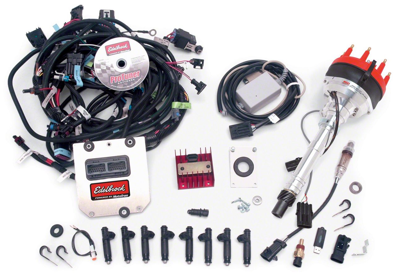 Semi-sequential injection. Dual O2 sensor inputs, switching or wideband. PC data logging. PWM idle control output. A/C load compensation. Dual mass air flow inputs. Upgradeable for future system options. Closed loop fuel control. Includes 48-pin ECU, base USB key, fuel injectors, ignition amplifiers, sensors and wiring harnesses.