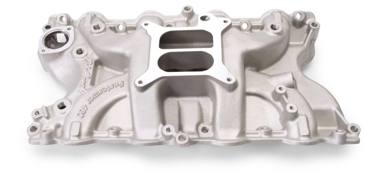 Performer 460 Intake Manifold is designed for street 429/460 c.i.d. Ford V8s. Number 2166 is stock replacement/street legal part for 429 & 460 V8s with OEM 4-bbl. carburetor with electric choke.