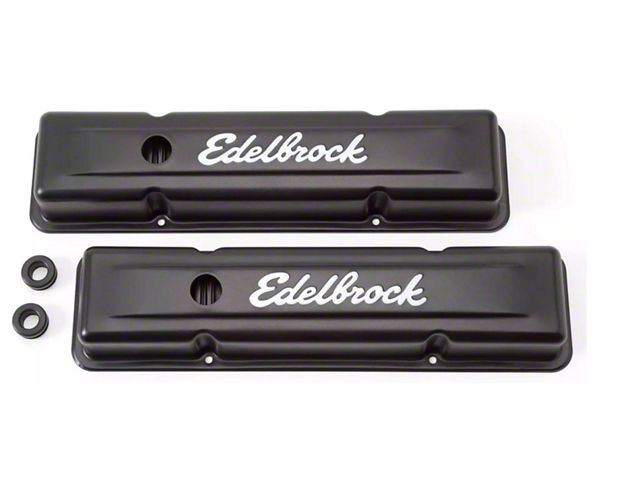 The Edelbrock #4443 Signature Series Valve Covers are designed for Chevrolet 262-400 ???59-86 applications. Engineered for function and styled for great looks, Signature Series valve covers have stock-style breather baffles that prevent oil passage to the PCV valve. These quality valve covers accept all emissions equipment, including PCV valve holes. Rubber grommets for the breather and PCV valve holes are included. Matching breathers sold separately
