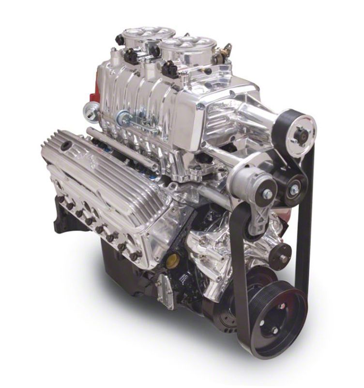 Want big-block power in a small package for your street rod or muscle car? the recipe is simple... Take the proven RPM E-Tec, bolt on powerful E-Tec 200 cylinder heads and Edelbrock E-Force Supercharger utilizing eaton rotors. The EFI engine produced 519 horsepower, 507 ft-lbs. Of torque and performed on 91-octane pump gas. Your choice of satin aluminum or polished finish.