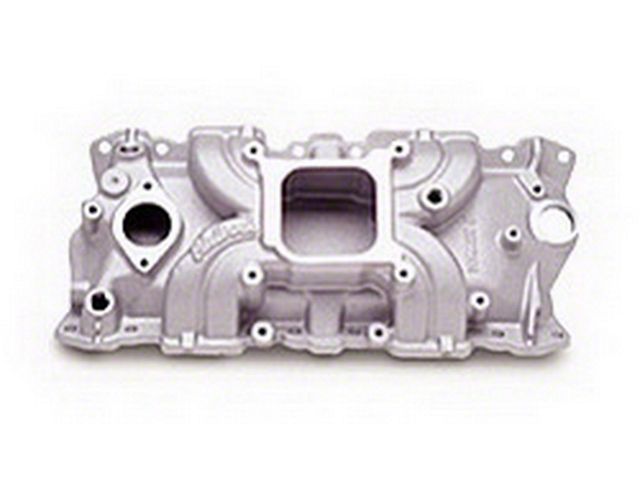 Designed for 1955-86 high-performance street 262-400 c.i.d. small-block Chevys. Manifold accepts late-model waterneck, air-conditioning, alternator and H.E.I. Will fit Corvette and 1987 and later stock aluminum heads.