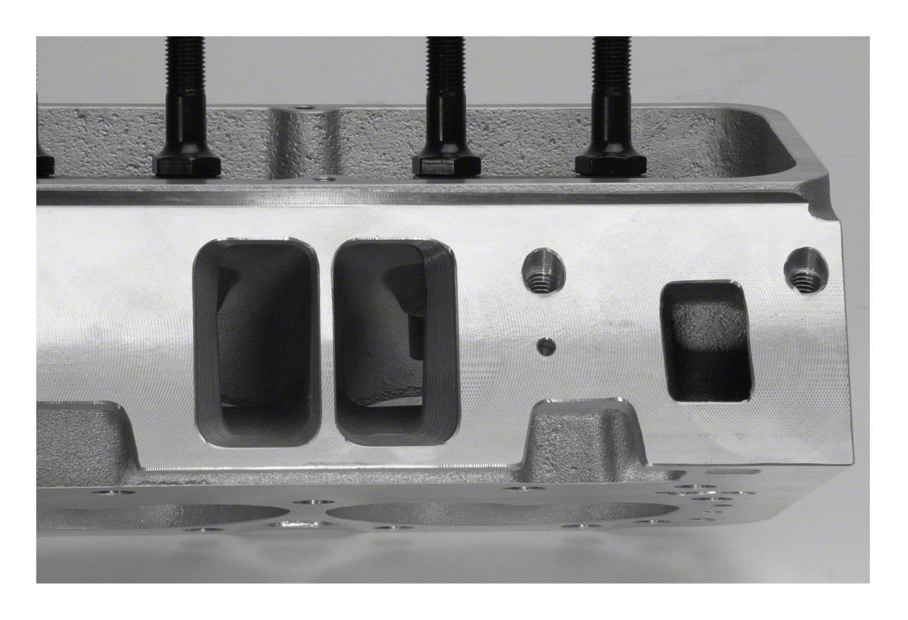 Edelbrock E-Tec cylinder heads are replacements for 302, 327, 350 & 400 c.i.d. small block Chevy engines with "Vortec-style" manifolds. They feature an LT1-style raised runner intake port design for increased air-flow and ultimate performance. A unique combustion chamber design positions the spark plug closer to the center of the cylinder, promoting a more efficient combustion resulting in more power. These heads include an adjustable rocker stud and guide plate set-up for use with adjustable rockers or washers to properly position the stud height to accommodate factory style self-aligning rocker arms. They have 20% more exhaust flow than cast iron Vortec heads, great performance up to 6000 RPM and can produce 9.5:1 compression with stock pistons in 350 cubic-inch engines. RPM E-Tec cylind