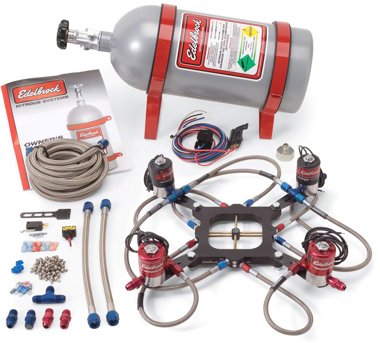 Victor Jr. Dual-stage nitrous systems are designed for those who want to add power in stages to soften the "hit" of the nitrous system. This is one of the best ways to control excessive tire spin or violent chassis reaction. Victor Jr. Dual-stage systems allow you to adjust the first stage to supply 100-150 additional horsepower, then trigger the second stage for 150-250+ HP. They include all the high quality features of single stage Victor Jr. systems but allow you to add a second stage of nitrous to your engine..