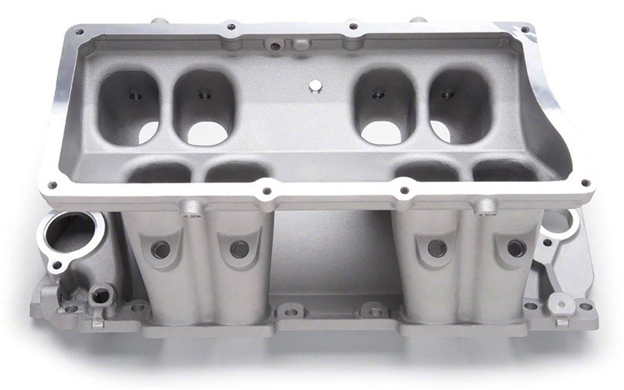 VICTOR TUNNEL RAM (4500-8500 RPM) This Victor Tunnel Ram is a modern updated design to our very successful Victor Ram 2-R Tunnel Ram, which was first released over 35 years ago. It's designed for use with 468-582 c.i.d. standard-deck Chevrolet V8 engines with conventional rectangular port cylinder heads. This new and improved design has 7" long runners with close to 5.5 square-inches at the plenum, making it 25% larger than our current Victor Ram 2-R Tunnel Ram base! This is the ideal intake manifold for any modern high horsepower demanding application. Will fit Edelbrock Victor series race cylinder heads #77409, #77459 and #77609. Available for carbureted and fuel injected applications. The Victor Tunnel Ram top is for use with 4500 series carburetors and our new Victor Tunnel Ram base ma