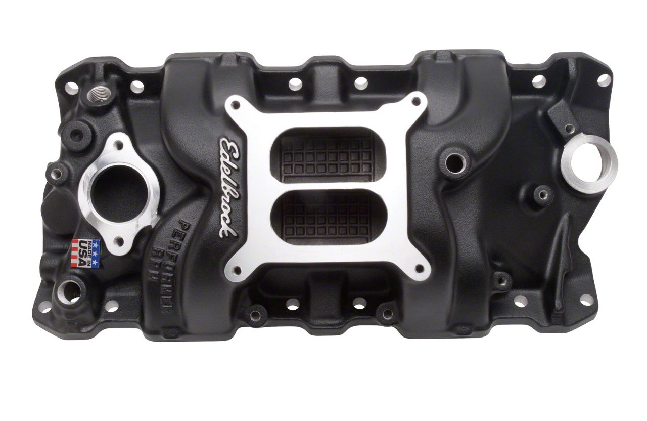 Designed for 1955-86 262-400 c.i.d. Chevy V8s for maximum power and a broad torque curve for high-performance street/marine. Provides power like a single-plane and throttle response like a dual-plane. Has provisions to add oil fill tube.
