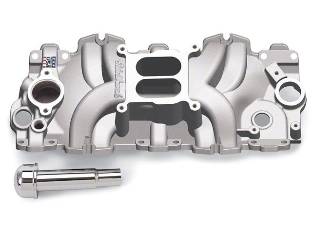 Designed for 1955-86 262-400 c.i.d. Chevy V8s for maximum power and a broad torque curve for high-performance street/marine. Provides power like a single-plane and throttle response like a dual-plane. Has provisions to add oil fill tube.