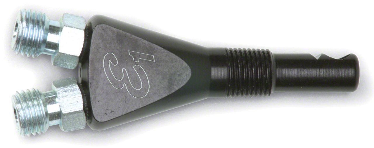Used in all Performer EFI "wet" nitrous systems, the patented Edelbrock E1 nozzle is one of the most advanced in the industry. With its unique fuel passage design, this nozzle gives extremely high atomization and is the key to the outstanding performance. Machined from light-weight aluminum and anodized black for durability, the E1 nozzle allows the use of up to 60 lbs. of fuel pressure for a more complete combustion process in the chamber that results in more horsepower. Specially designed fuel outlets enhance atomization, even at lower fuel pressures. Multiple radiuses are used at the nitrous outlet to give the least amount of turbulence and a more precise nitrous spray. The unique fuel delivery angle ensures a complete mixing of nitrous and fuel for optimum atomization. Edelbrock E1 nit