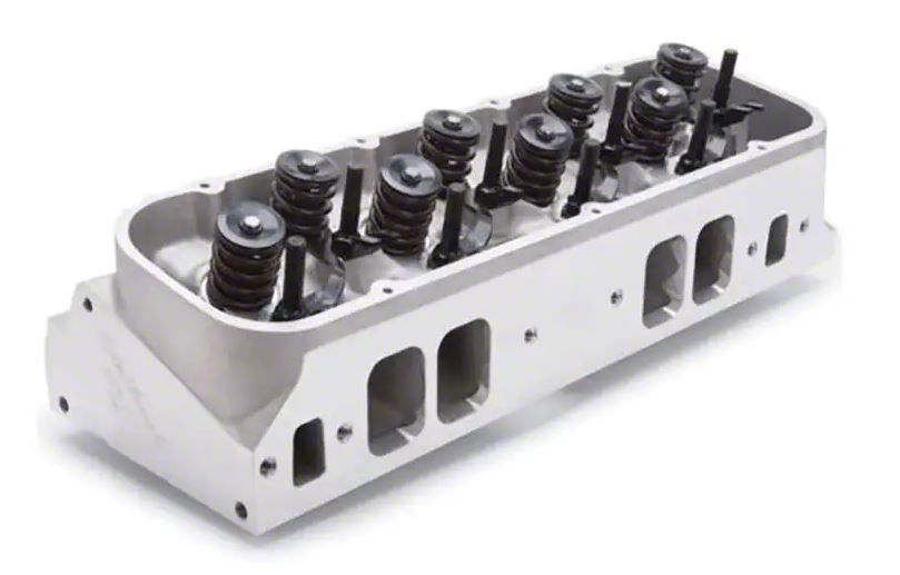 These cylinder heads feature an extra thick deck and extra material in the spring pockets for a heavy-duty casting that can be used with high-lift cam and heavy spring combinations. Edelbrock equips the complete heads with your choice of spring packages to suit hydraulic or mechanical roller cams. Choose a hydraulic spring package for flat tappet or hydraulic roller cams up to .700 lift. Mechanical roller cam spec include manley dual-spring valve springs and titanium retainers good for up to .880 lift. The 300cc rectangle ports produce impressive flow and great power on competition big-blocks up to 510 c.i.d. With 4.310 or larger bore. Exhaust port exits are raised .534 to greatly improve exhaust flow and power.