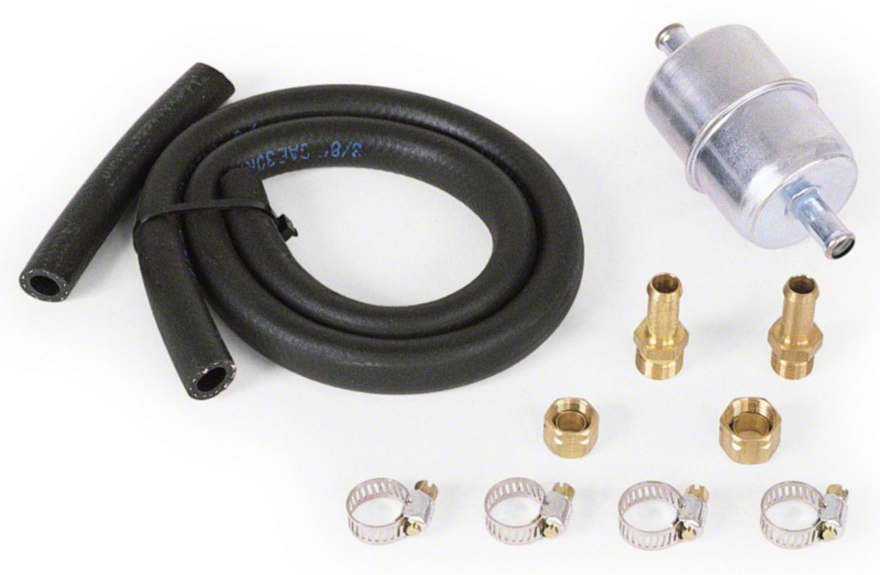 Designed for quick installation when retaining part of the stock steel fuel line, simply cut the stock line and install the compression fitting. Use supplied neoprene hose, clamp and special fuel filter and connect to carb.