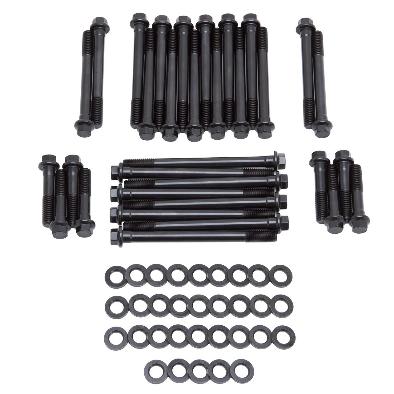 Edelbrock head bolt kits contain a complete set of the highest quality head bolts and hardened washers available. Cold-formed to ensure molecular integrity and heat treated prior to thread rolling and machining.
