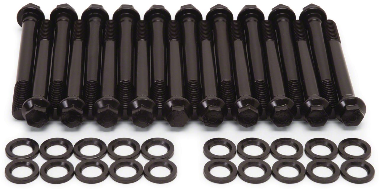 Edelbrock head bolt kits contain a complete set of the highest quality head bolts and hardened washers available. Cold-formed to ensure molecular integrity and heat treated prior to thread rolling and machining.