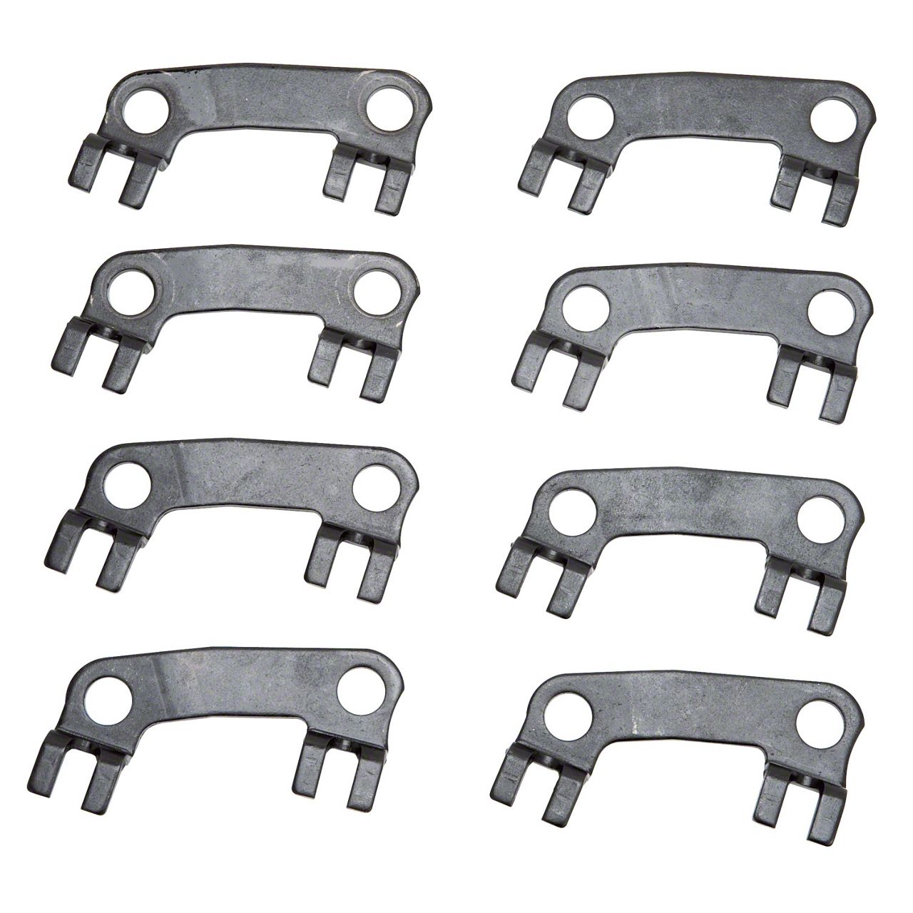 Pushrod guideplates. Made from high-grade alloy steel and hardened to 60 Rockwell "C". Stepped plates support pushrod closer to rocker, stabilizing pushrods. Set of 8.