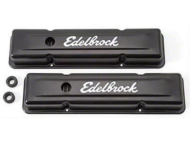 These valve covers are engineered for function and styled for good looks. Signature Series valve covers have stock-style breather baffles that prevent oil passage to the PCV valve. Rubber grommets for the breather and PCV valve holes are included. Typically, low profile valve covers clear air-conditioning and alternator brackets. These Signature Series valve covers clear most aluminum rocker arms and moderate lift cams.