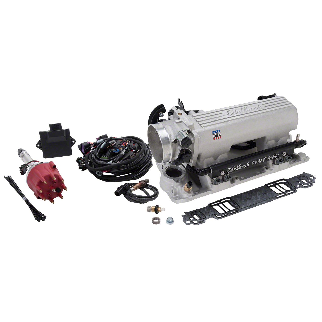 The Edelbrock Pro-Flo 4 XT EFI Kit #35810 for 1986 & Earlier Small-Block Chevy engines has the latest technology and features. The EFI system comes complete with a satin finish Pro-Flo XT intake manifold and 35 Lb/Hr injectors capable of 550 HP with 58 p.s.i. fuel pressure. Also included is a plug and play single connection distributor designed to work specifically with Pro-Flo 4 and a made in the USA high-quality harness with clearly labeled connections for a hassle-free installation. The new Pro-Flo 4 EFI systems feature an all-new ECU with a faster processor, a water proof design and is half the depth of the previous ECU. It also has an upgraded Bluetooth chip that is faster, more reliable and will not drop connection. We've added more features for the advanced tuner giving you control over air-fuel ratios, ignition curve, idle speed, acceleration fuel, coolant fans, Rev limiter while retaining the simplicity Pro-Flo is known for. The key to the system is our exclusive E-Tuner 4 app with dyno developed base calibrations. The E-Tuner 4 app uses a Bluetooth wireless connection to communicate with the ECU's self-learning capability to continually adjust the calibration to get the maximize performance. E-Tuner 4 features a simple and easy to use setup wizard to help you get started as well as multiple dash displays so you can monitor your engines vitals. The exclusive Edelbrock E-Tuner 4 app is Free and Available for Android and IOS based smart phone or tablet.