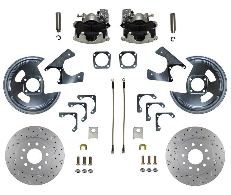 Add the safety, reliability and performance of rear disc brakes to your vehicle with our drum to 10 bolt disc brake conversion. In this GM rear disc brake conversion kit, you receive everything you need to mount single piston disc brakes to your GM 10 & 12 Bolt Rear Axle. All components used in these GM rear disc brake conversion kits are new high quality, precision machined products with a zinc plated finish to reduce corrosion and extend the life of your brake system. The heavy duty parking brake caliper will allow you to use your stock parking brake cables to actuate your parking brake.