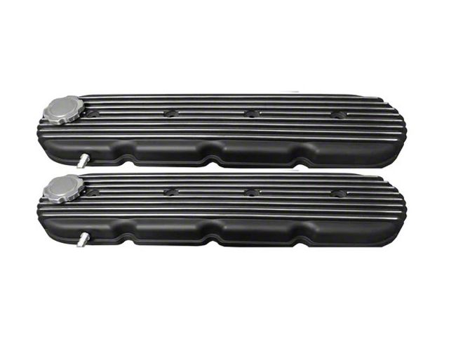 Chevy LS Retro Finned Valve Covers; Black (Universal; Some Adaptation May Be Required)