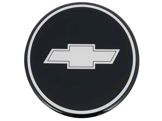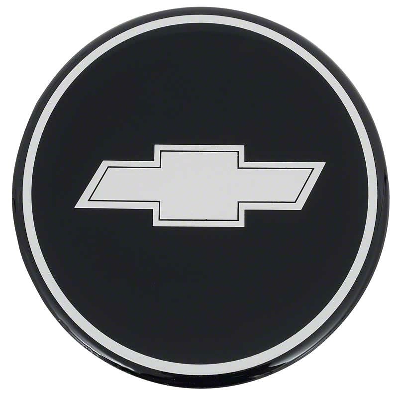Construction and Appearance. This distinctive domed wheel center cap decal is manufactured with a poured polyurethane coating to provide an upscale 3-dimensional look and features a chrome Bow Tie logo on a black background. Each decal measures 2-15/16" in diameter. For use on the R15 wheel that uses a 2-5/16" emblem circumference.