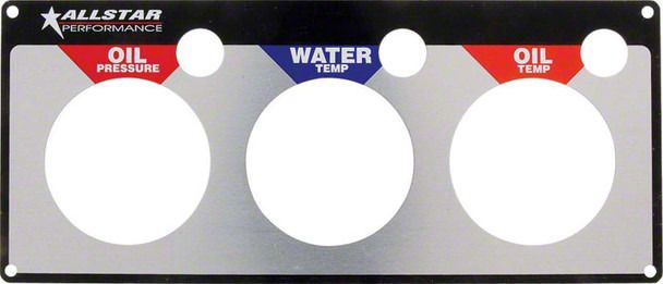 Gauge panels are completely assembled, pre-wired and include lighted mechanical gauges, warning indicator lights with senders to alert you of problems, detailed instructions and installation template. Select from panels fitted with Allstar, Stewart Warner, Auto Meter Sport-Comp, Ultra-Lite or Pro-Comp liquid-filled 2-5/8" gauges. Panels are available in two, three, or four gauge configurations. Two-Gauge Panels Are 4-1/2" Tall x 7-1/4" Long. Gauges: Oil Pressure And Water Temperature Three-Gauge Panels Are 4-1/2" Tall x 10-1/2" Long. Gauges: Oil Pressure, Water Temperature And Oil Temperature Or Fuel Pressure Four-Gauge Panels Are 4-1/2" Tall x 13-3/4" Long. Gauges: Oil Pressure, Water Temperature, Oil Temperature And Fuel Pressure.