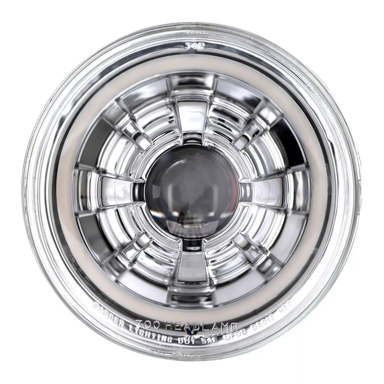 Eckler's no longer carries the 7-Inch LED Headlight with RGB Switchback Halo; Chrome Housing; Clear Lens (Universal; Some Adaptation May Be Required). Please check out Tri-Five Lightsfor an updated selection.