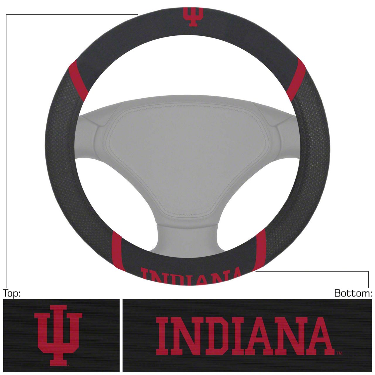 Steering Wheel Cover with Indiana University Logo; Black (Universal; Some Adaptation May Be Required)