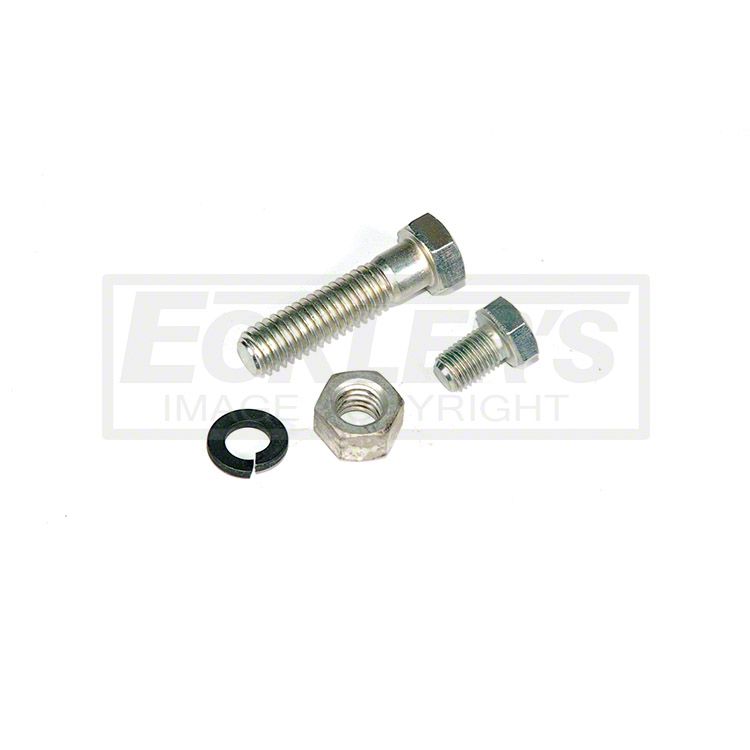These are the correct fasteners needed to assemble air conditioning related components. This four-piece kit includes hex bolts, nuts and split washers. Used to mount the heater hose clamp to the AC compressor.