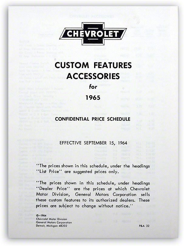 Eckler's no longer carries the El Camino Custom Features And Accessories Manual, 1965.