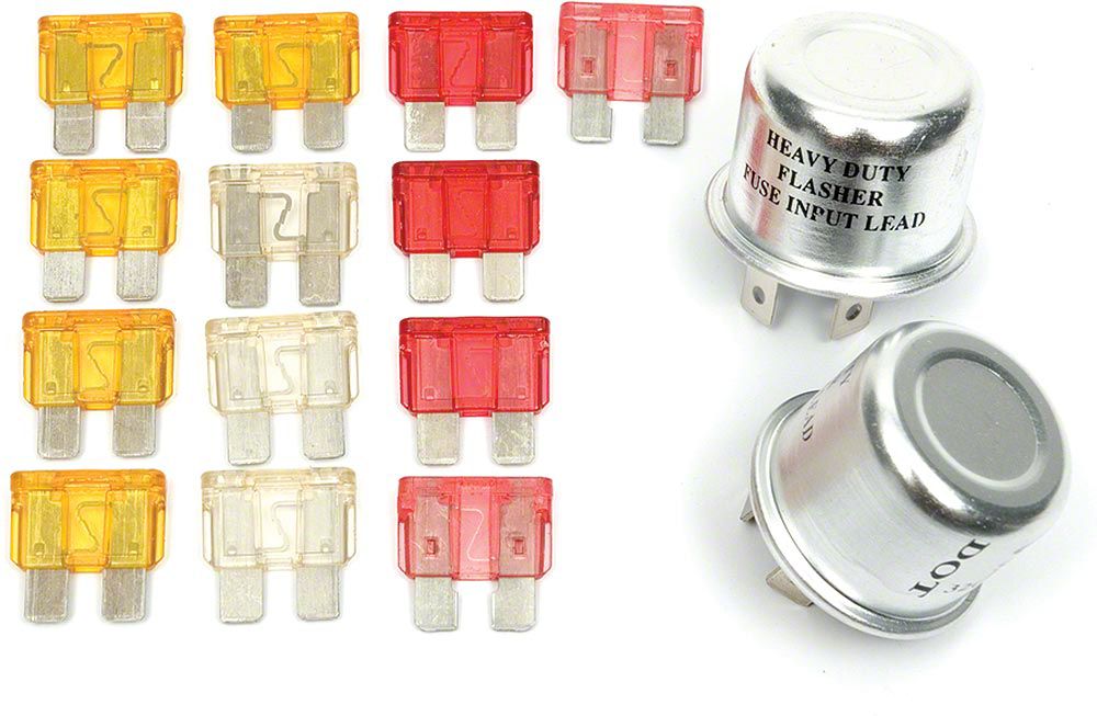 Contains two flashers and a complete set of ATO fuses with one spare of each amperage. For use with harnesses 06-1710, 06-1720, 06-1730