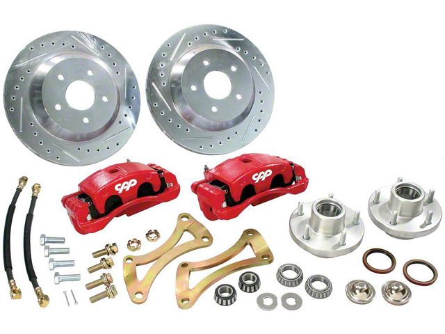 Over time your breaks wear down and rust leading you to need to replace it. You decide however it's time for a full conversion and you want to change to big brakes. The El Camino Store is proud to bring you this Big Brake Conversion Kit for your 1959 or 1960 El Camino! 13" front disc The front system uses a 13" cross-drilled, gas slotted and zinc washed rotor mounted to a 2024 T6 billet aluminum CNC machined anodized hub and a PBR C15 caliper that attaches to the spindle with a custom caliper mounting brackets. PBR C15 calipers have twin 52mm pistons and a larger brake pad surface area that offers about 60% more stopping power in the caliper that the popular C5 caliper at half the cost. This kits includes all the bearings, seals, dust caps, brackets, cables, hose