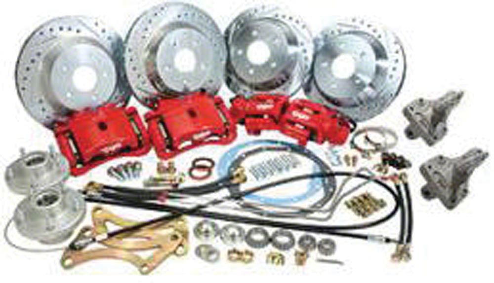 1964-1967 El Camino is a timeless classic. The El Camino Store offers this quality, Disc Big Brake Conversion Kit, Front And Rear, With 2" Drop Spindles, for your brake upgrade.The front system uses a 13 inch cross-drilled, gas slotted and zinc washed rotor mounted to a 2024 T6 billet aluminum CNC machined anodized hub and a PBR C15 caliper that attaches to the spindle with a custom caliper mounting brackets. PBR C15 calipers have twin 52mm pistons and a larger brake pad surface area that offers about 60% more stopping power in the caliper that the popular C5 caliper at half the cost. The rear system uses a 12 inch cross-drilled, gas slotted and zinc washed rotor that mounts to the factory axle with the longer studs supplied and mates up to a Lincoln Continental emergency brake sty