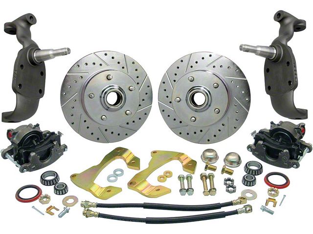 Over time your 1959 or 1960 El Camino brakes will wear down and rust so you decide to not only replace them but to convert them to disc brakes. The El Camino Store is proud to offer this Complete Front Disc Brake Conversion Kit for your El Camino! Improve the stopping power of your car while lowering your El Camino 2 inches with our complete stock spindle disc brake kit. Installation is a simple easy bolt on process! Each piece is built from the best materials to insure durability and effectiveness on your 1959 or 1960 El Camino. Always trust The El Camino Store for all your restoration needs!