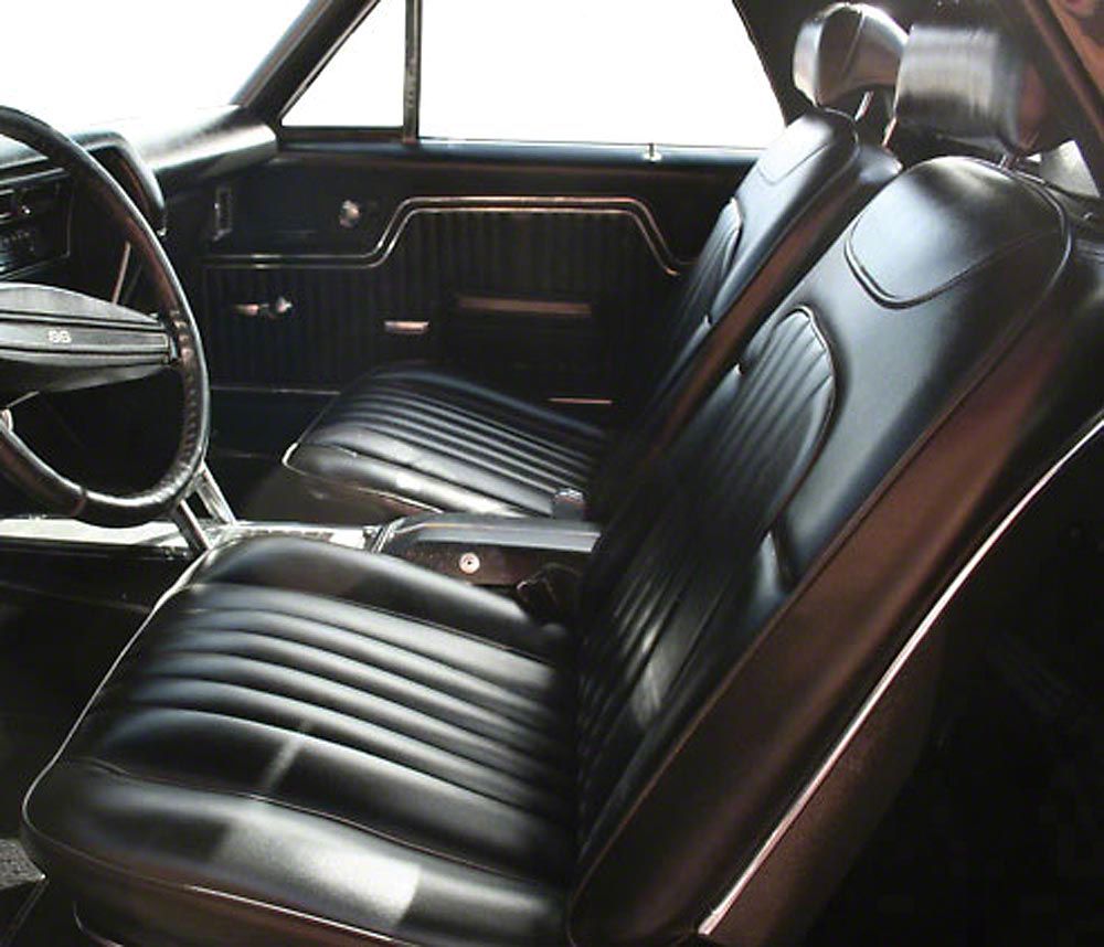 For your El Camino, you’ve come to the perfect place! The El Camino Store offers only the finest show-quality El Camino interiors. We compared the components offered by the leading automotive upholstery manufactures and selected each piece based on how close the quality, workmanship, correctness, grain and color matched the original El Camino upholstery. All our interiors are proudly made in the USA using materials that meet or exceed the original factory specifications. El Camino's with our interior win awards in every show that they enter worldwide. The '71 seat covers were the first of the El Camino's to combine two different grains of vinyl. Elk grain vinyl is displayed in the vertically stitched inserts with Madrid grain