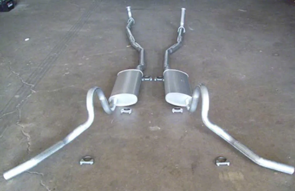 Restore your El Camino exhaust to the original showroom look with this 14 gauge aluminized steel system from The El Camino Store. Starting at the exhaust manifolds, these new pipes extend all the way back to the over-axle pipes, efficiently routing exhaust gasses into the correct muffler before they exit through properly bent tailpipes that are cut to the precise angle GM used when these cars rolled off the assembly line. Recreate the sound of the past with this original style dual exhaust system for your El Camino. Trust The El Camino Store for all your restoration and performance parts needs. Fits: 1968,1969