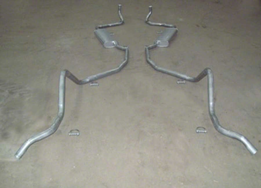 Restore your El Camino exhaust to the original showroom look with this 14 gauge aluminized steel system from The El Camino Store. Starting at the exhaust manifolds, these new pipes extend all the way back to the over-axle pipes, efficiently routing exhaust gasses into the correct muffler before they exit through properly bent tailpipes that are cut to the precise angle GM used when these cars rolled off the assembly line. Recreate the sound of the past with this original style dual exhaust system for your El Camino. Trust The El Camino Store for all your restoration and performance parts needs. Fits:1964, 1965