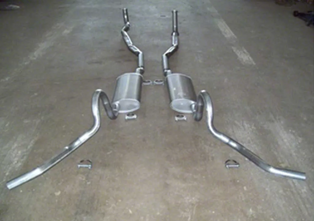 Restore your El Camino exhaust to the original showroom look with this 14 gauge aluminized steel system from The El Camino Store. Starting at the exhaust manifolds, these new pipes extend all the way back to the over-axle pipes, efficiently routing exhaust gasses into the correct muffler before they exit through properly bent tailpipes that are cut to the precise angle GM used when these cars rolled off the assembly line. Recreate the sound of the past with this original style dual exhaust system for your El Camino. Trust The El Camino Store for all your restoration and performance parts needs. Fits: 1970, 1971, 1972