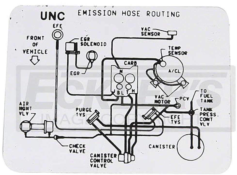 Emission Decal, 305 c.i. 5.0 Hose Routing, Automatic Manual, Code UNL (1985 Caballero; 1985 El Camino)
