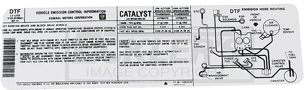 Emission & Hose Routing Decal, 231 c.i. 3.8 Automatic Transmission, Code DTF (1983 Caballero; 1983 El Camino)