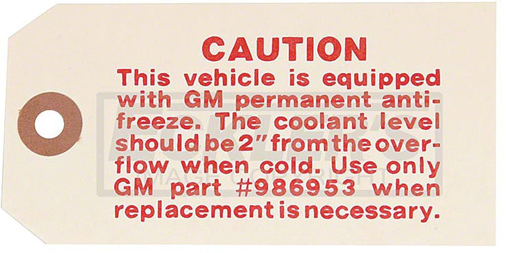 - Correct Tag That Hung Off Radiator When Your Car Was New