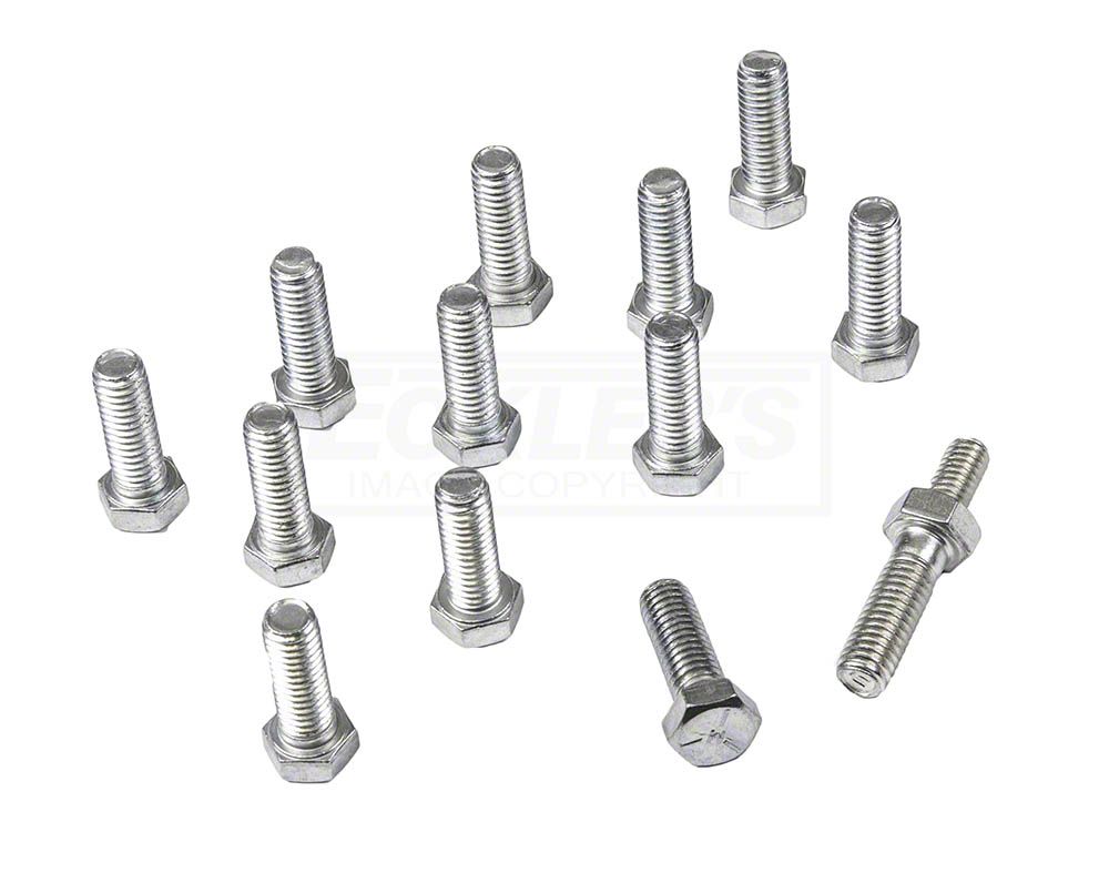 Authentic hardware you need to correctly reassemble the engine components. Most fasteners have correct markings for the time period. This thirteen-piece kit includes "M" marked hex bolts and one (TCS) hex collar stud.